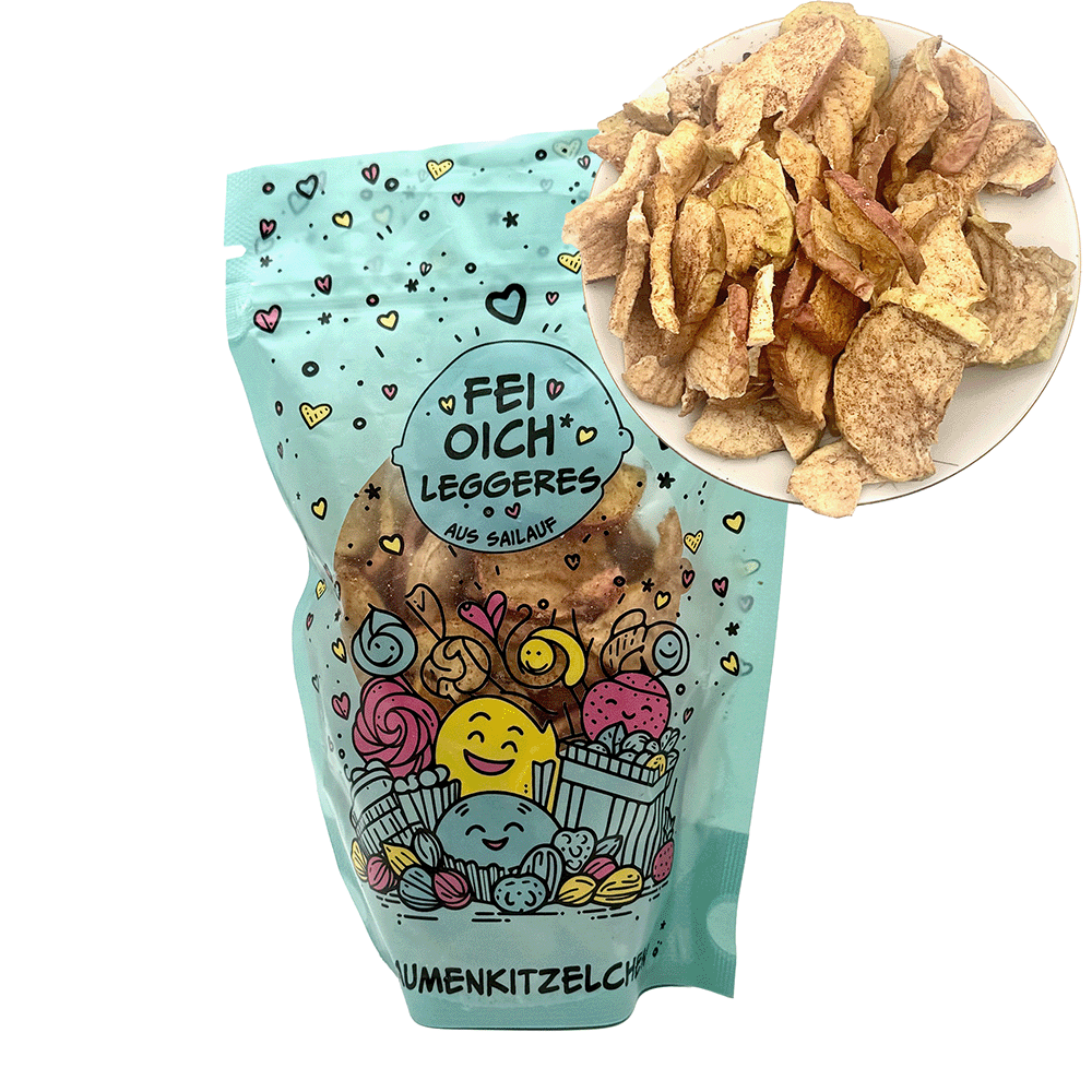 Produktinformationen "Apfel-Zimt Chips 100 g, petrol, Gaumenkitzelchen - "Fei Oich Leggeres aus Sailauf""