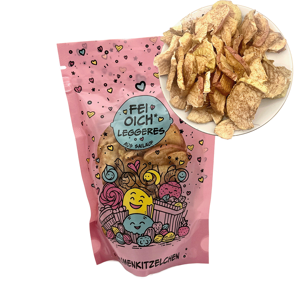 Apfel-Zimt Chips 100 g, rosa, Gaumenkitzelchen - "Fei Oich Leggeres aus Sailauf"