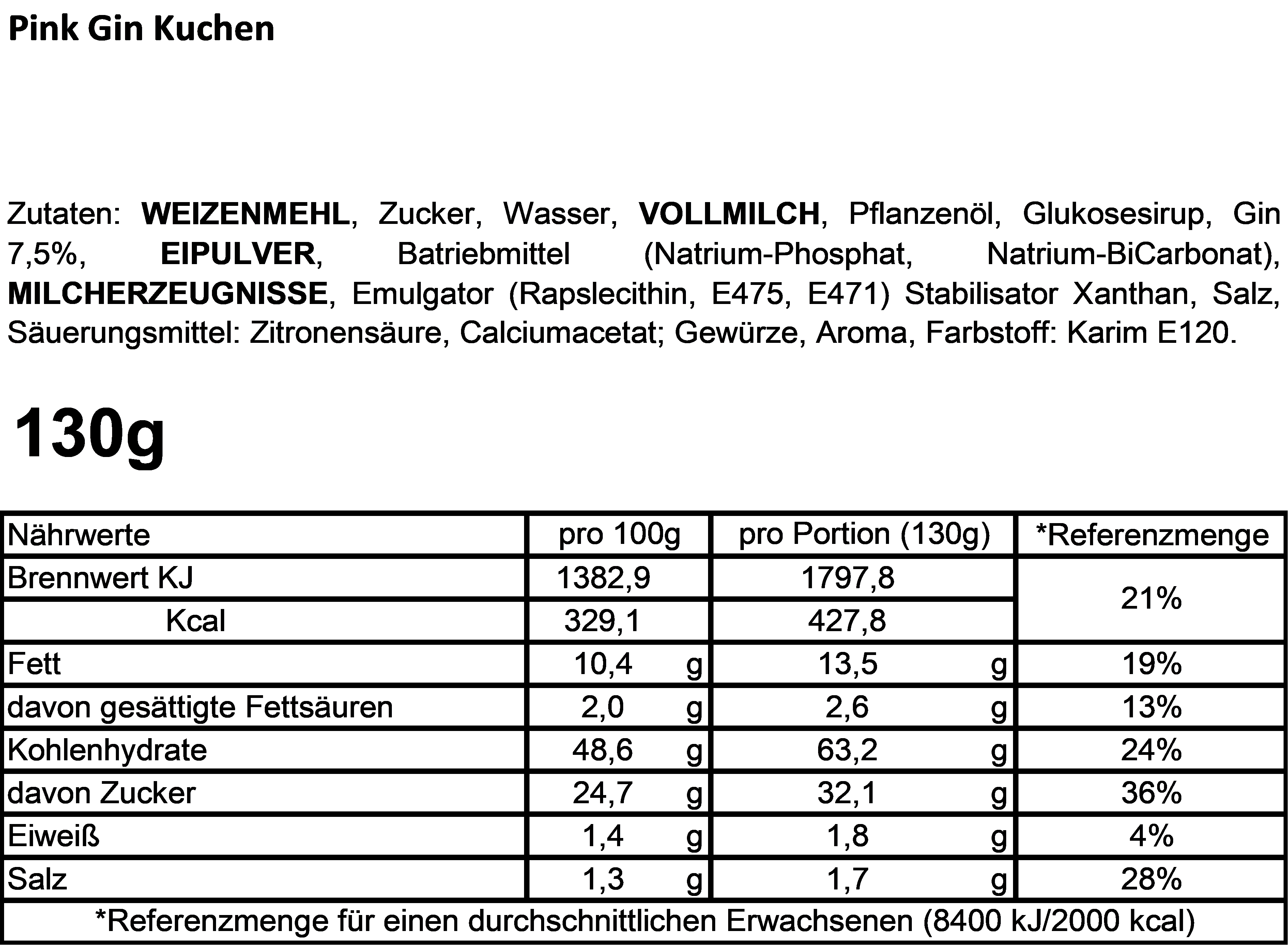 Inhalt: ca. 130 g / Kuchen