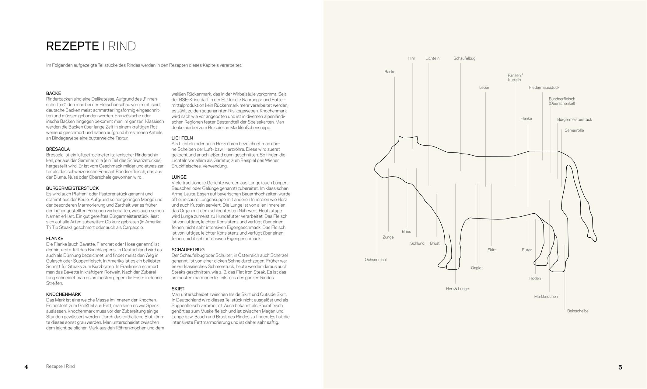 • Umfassende Informationen zu Rassen und Haltung der Tiere, Fleischschnitt, -reifung und -klassifizierung, aber auch zu Schlachtung und den „ungeliebten“ Stücken, ergänzen dieses Buch.