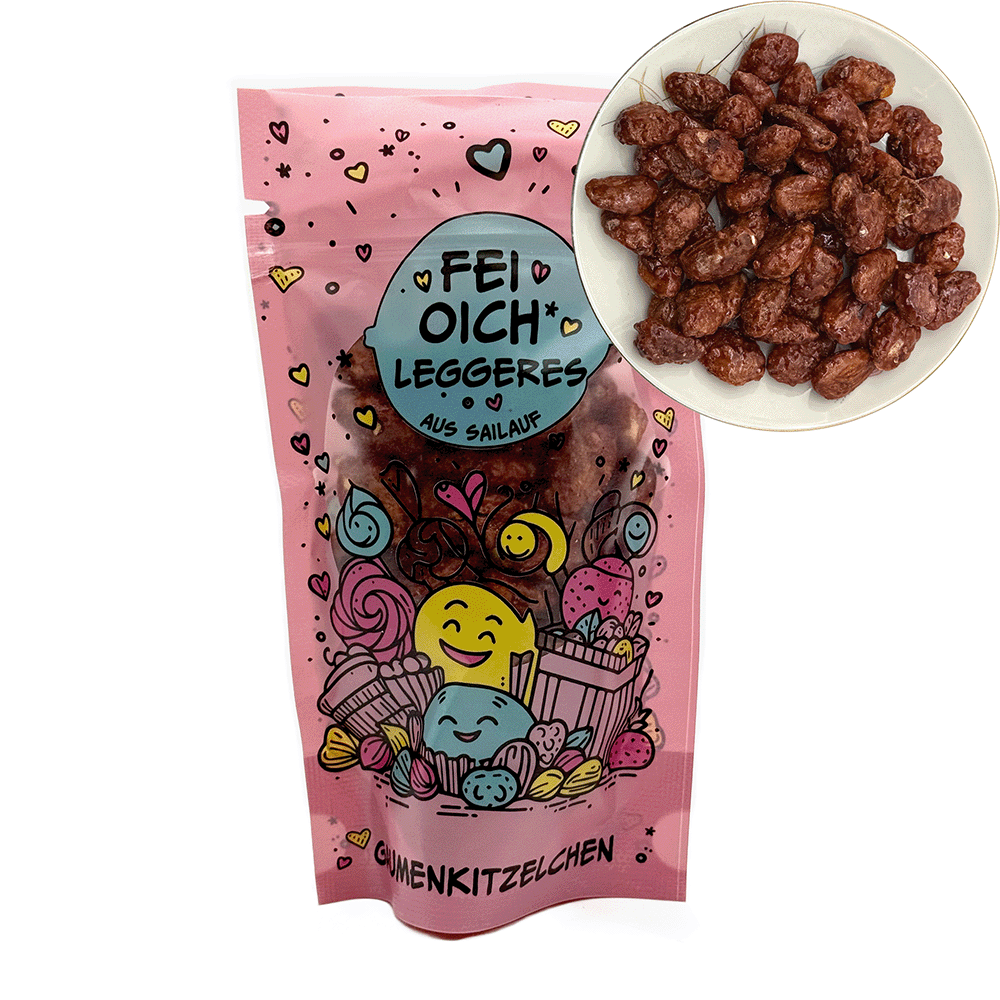 Produktinformationen "Gebrannte Vanillemandeln, 130 g, rosa, Gaumenkitzelchen - "Fei Oich Leggeres aus Sailauf""