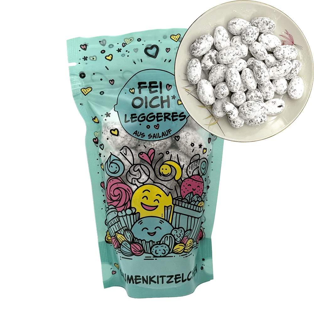 Produktinformationen "Schoko-Schneemandeln 180 g, petrol, Gaumenkitzelchen - "Fei Oich Leggeres aus Sailauf""