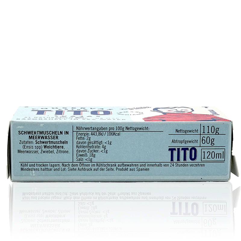 Produktinformationen "Schwertmuscheln in Meerwasser, Zitrone und Zwiebeln, 110 g, TITO"