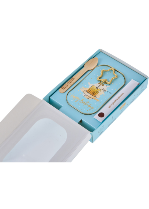Einfach nur die Dose öffnen – Wondercandle® mini in den Kuchen stecken – anzünden – das Strahlen genießen – auslöffeln!